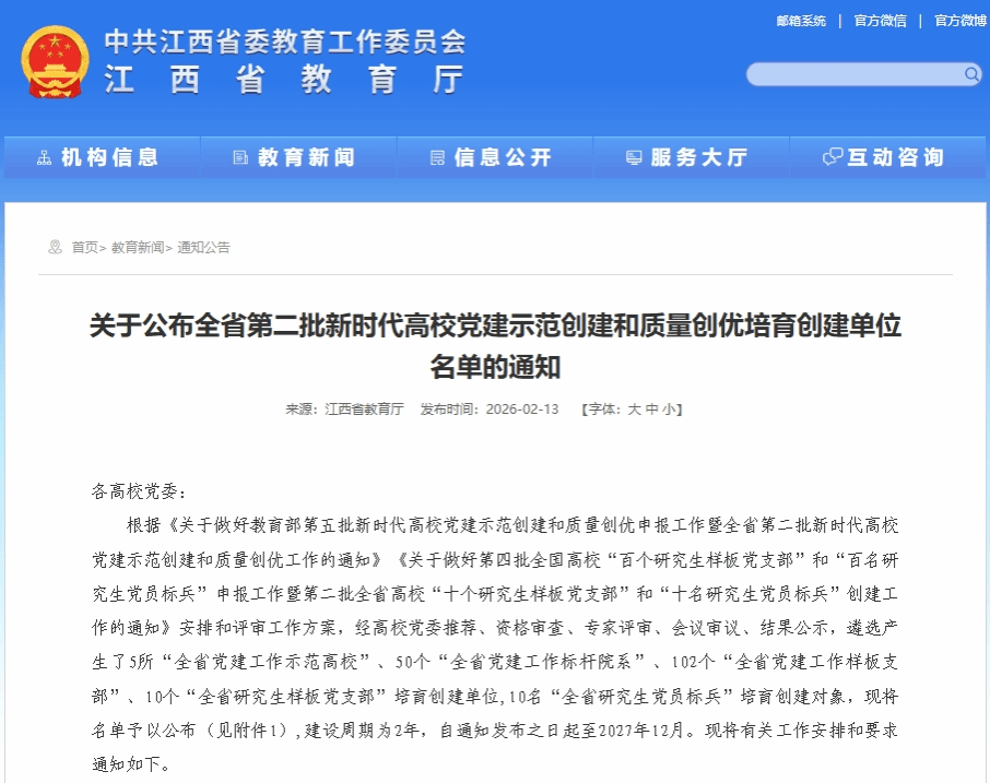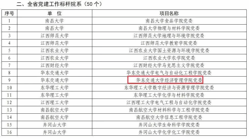 近日,中共江西省委教育工作委员会、江西省教育厅公布全省第二批新时代高校党建示范创建和质量创优培育创建单位名单,华东交通大学经济管理学院党委入选“全省党建工作标杆院系”创建培育单位。