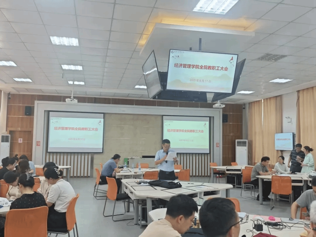 2025年6月17日,经济管理学院召开深入贯彻中央八项规定精神学习教育警示教育会,经济管理学院全体教职工参加,会议由经济管理学院党委书记余得生主持。