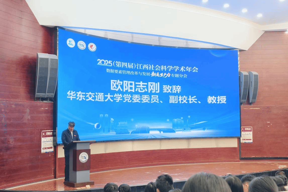 10月19日,由江西省社会科学界联合会主办,华东交通大学经济管理学院、江西省哲学社会科学重点研究基地“经济数字化转型研究中心”承办,南昌交通学院商学院、《老区建设》编辑部、华东交通大学江西人才与产业融合发展研究院、上高县委组织部、上高高新园区管委会共同协办的2025(第四届)江西社会科学学术年会“数据要素管理改革与发展新质生产力”专题分会在我校举行。江西省社科联党组成员,副主席许璟出席开幕式并讲话,华东交通大学党委委员、副校长欧阳志刚教授出席开幕式并致辞,南昌交通学院校长肖长春教授出席开幕式并致辞。会议由华东交通大学经济管理学院党委书记余得生教授主持。